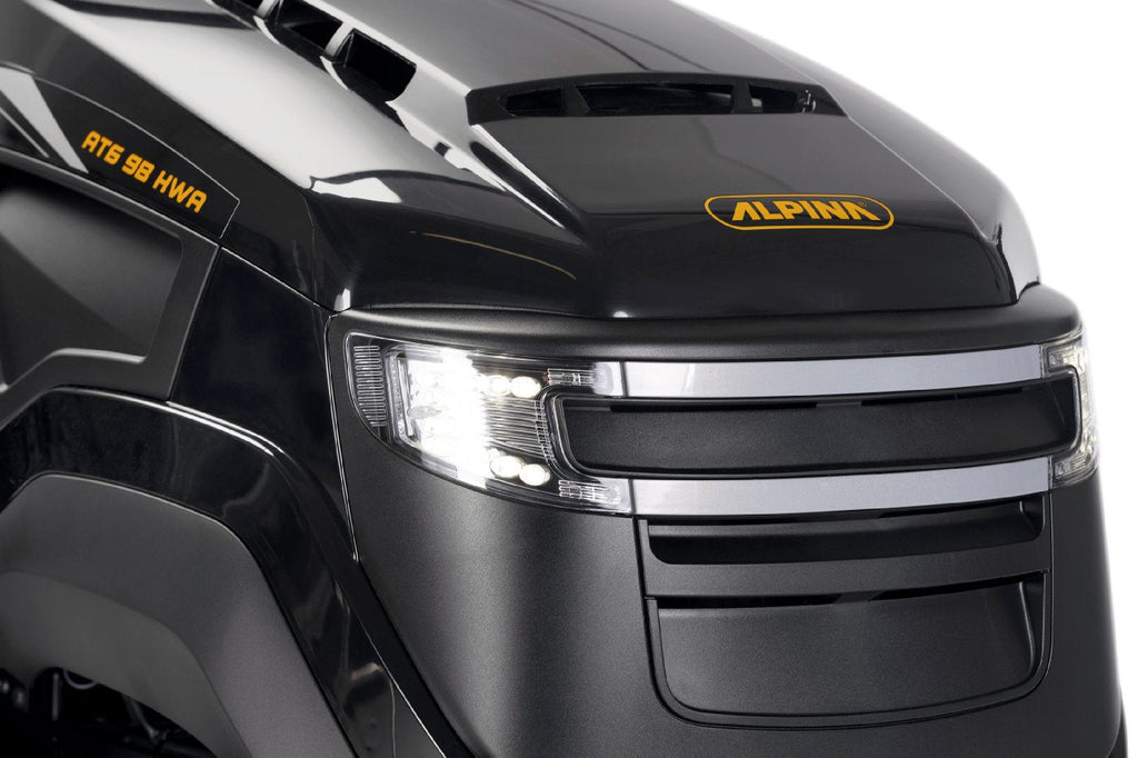 Dabei wird die Manövrierfähigkeit optimiert und das Umgehen von Hindernissen erheblich erleichtert. Dank der von Alpina angebotenen Sammel-, Heckauswurf- und Mulchfunktionen können Sie sich an eine Vielzahl von Grasbedingungen anpassen. Der AT6 102 HWA profitiert von einer elektromagnetischen Messerkupplung, die das Ein- und Ausrücken der Messer zu einem völlig mühelosen Vorgang macht. Zu den weiteren attraktiven Merkmalen zählen langlebige und energieeffiziente LED-Scheinwerfer, die bei schlechten Lichtverhältnissen eine wesentliche Beleuchtung bieten und eine Stoßstange für robusten Aufprallschutz.